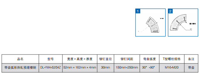 带齿弧型热轧预埋槽钢